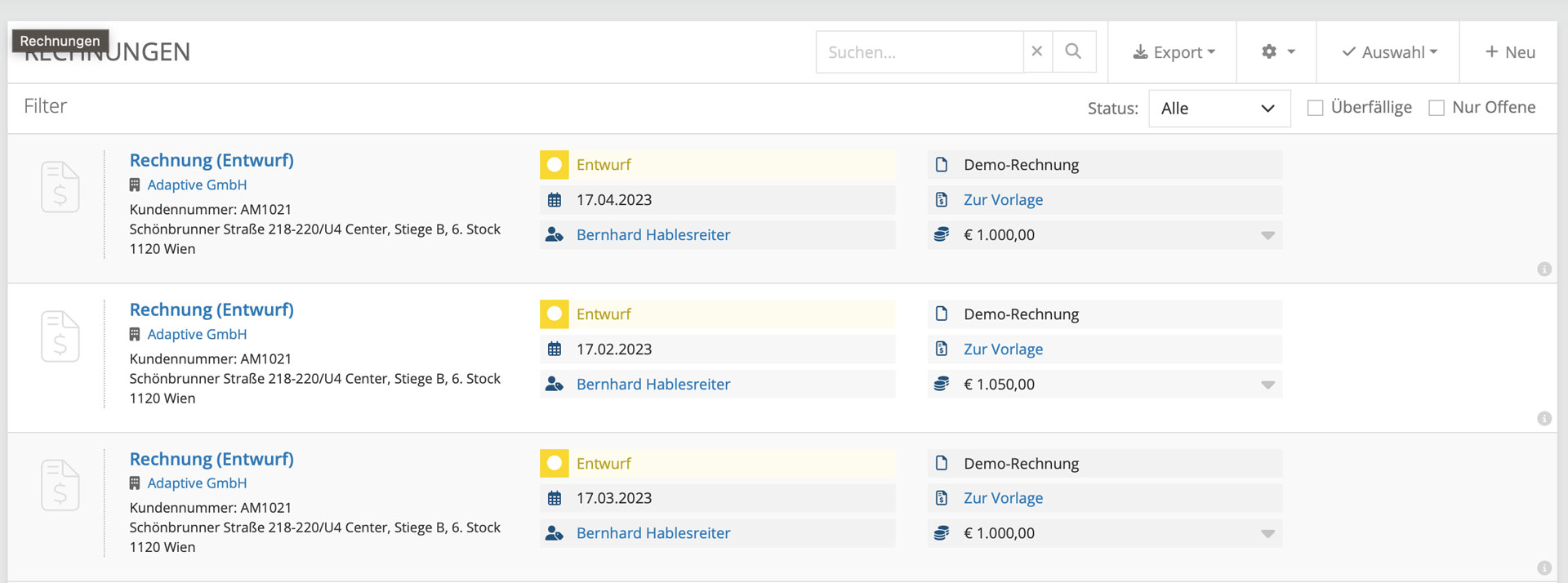 - Angebote, Rechnungen und Verträge